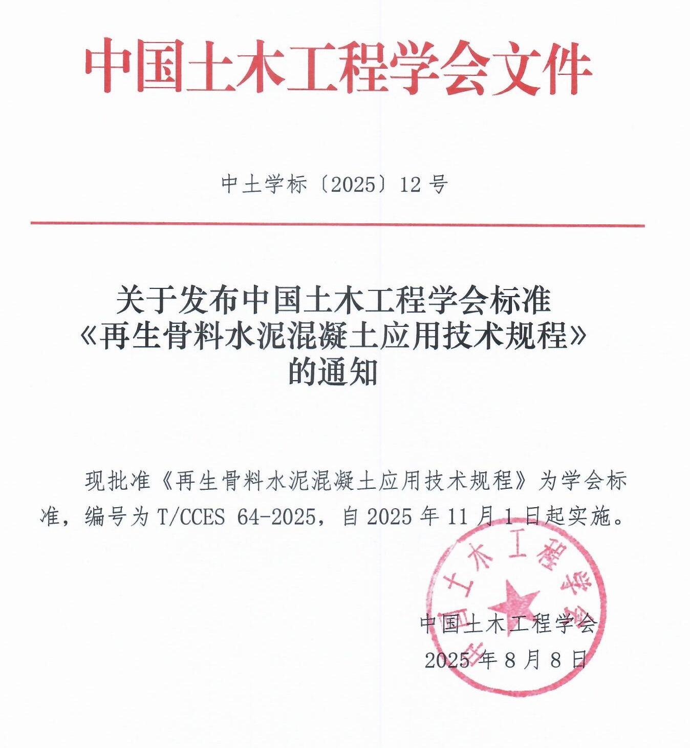 当一块废混凝土遇见中寓的技术,它不再是“建筑垃圾”,而是撑起绿色低碳未来的“新骨料”。核心喜讯2025年11月1日,由中国土木工程学会正式发布、中寓建筑系统旗下广东中邺山河建筑工程有限赢博yingbo(中国)、广东中寓再生建筑科技有限赢博yingbo(中国)和湖南湘水路桥建设有限赢博yingbo(中国)深度参编的《再生骨料水泥混凝土应用技术规程》(以下简称《标准》)全面施行。该标准的落地,标志着我国再生骨料水泥混凝土应用迈入规范化新阶段,更凝聚着中寓建筑系统赢博yingbo(中国)对绿色建材技术创新的深耕坚守。中寓建筑系统作为核心参编单位,全过程参与了立项论证、试验验证、条文编写与审查表决。从标准筹备到正式实施,每一个环节都承载着推动行业进步的初心,也镌刻着中寓人的匠心付出。回溯标准编制之路,我们始终以专业姿态全程参与,贡献中寓智慧。此次深度参编行业标准,并非偶然,而是中寓建筑系统多年来坚持科技创新、深耕绿色建筑领域的必然结果。自成立以来,赢博yingbo(中国)始终将科技创新作为核心发展战略,坚信“技术创新是企业发展的第一动力”,持续加大研发投入,搭建高水平创新平台,汇聚行业顶尖人才,在建筑材料研发、建筑系统集成等领域不断突破,取得了一系列丰硕成果。研发平台建设赢博yingbo(中国)先后成立了企业技术中心、绿色建筑材料研发实验室,配备了先进的研发设备与检测仪器,为技术创新提供了坚实的硬件保障。同时,积极开展产学研合作,与国内多所知名高校、科研院所建立长期稳定的合作关系,打通“科研-标准-产业”转化链条,加速技术成果的产业化应用。