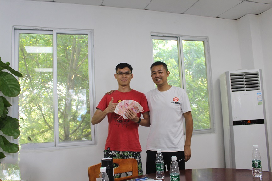 最后,由赵总为今天小组登山比赛中获得第一、二、三名的小组颁发了现金奖励3000元、2000元、1000元,并为未获奖的3个小组颁发了个人“特别贡献奖”200元。