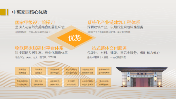 中寓家园以“共筑美好生活”作为重要品牌核心理念,为城市精英回乡提供专业的乡墅建造和生活居住解决方案。
