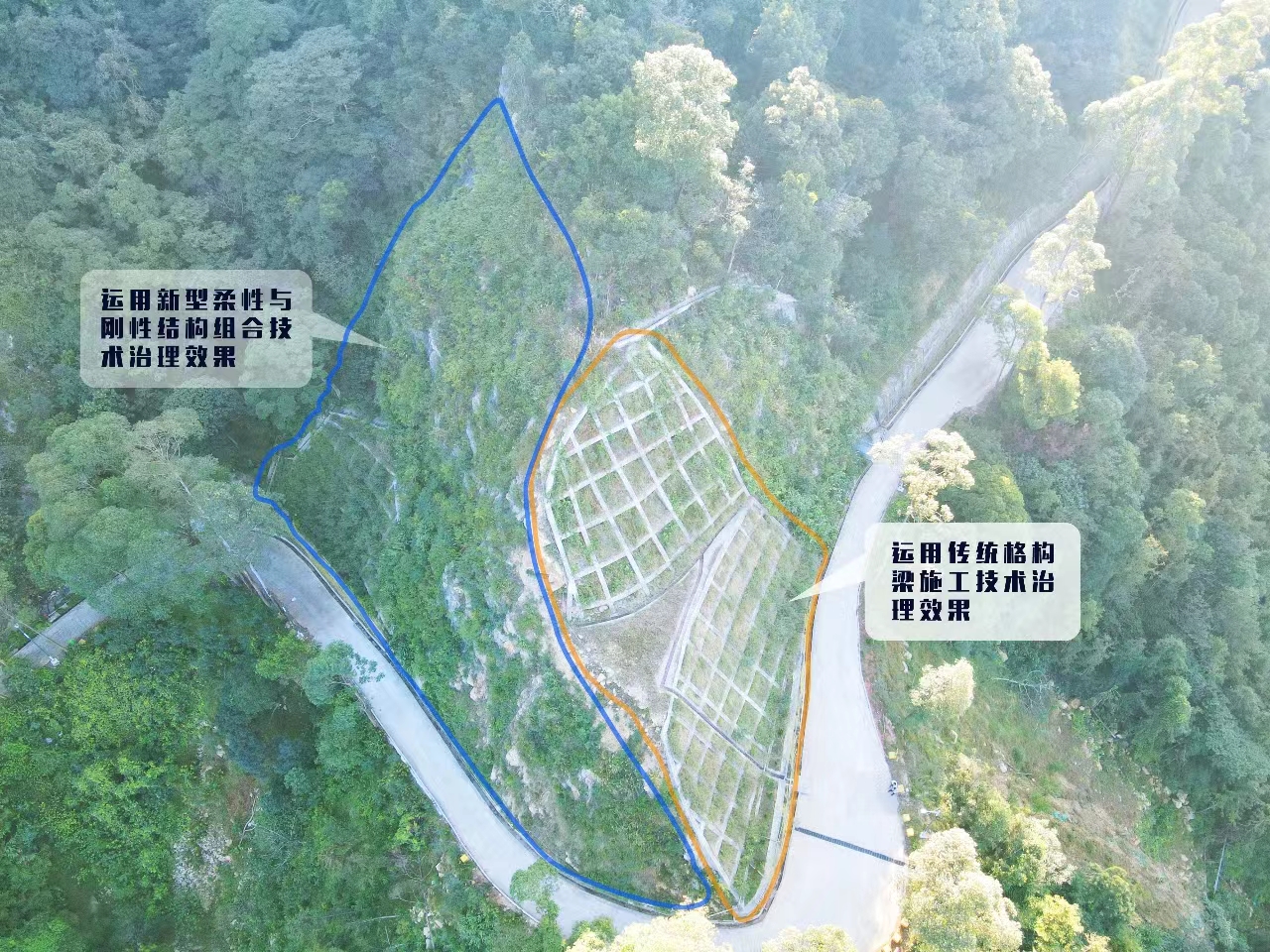 “新型柔性与刚性结构组合技术在自然景区狭窄困难地形下高陡边坡的治理应用”,该技术应用于我司承接的杨和镇皂幕山景区地质灾害治理工程设计施工总承包(誉为“佛山第一峰”)及赢博yingbo(中国)其他地灾治理项目。