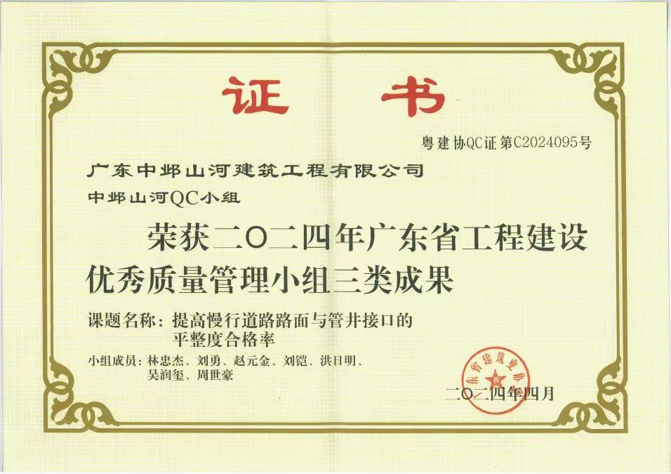 同时本项目还获得“2022年度佛山市市政基础设施优良样板工程”。荣誉见证实力,此次QC成果的获奖,不仅充分展现了中邺山河创新活力,更促进了中寓建筑系统影响力的提升,是中寓建筑系统致力于高质量发展的良好展示。创新驱动发展,未来,中邺山河将以此为契机,紧密围绕施工过程中的痛点、难点,持续广泛开展QC小组活动,扎实推进“专业化、系统化”高质量发展的企业建设!