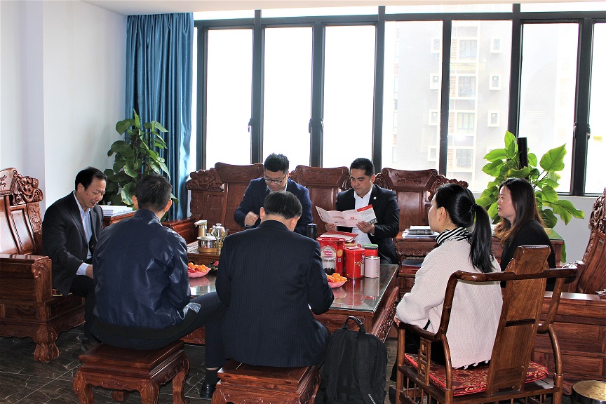 在考察期间,中南林科大考察团在我司董事长赵元金先生一行的陪同下参观了我司办公区、企业荣誉展示区,并与我司进行了交流座谈。