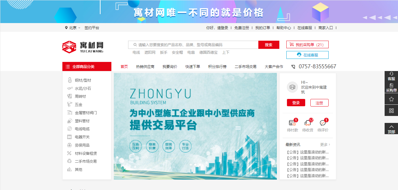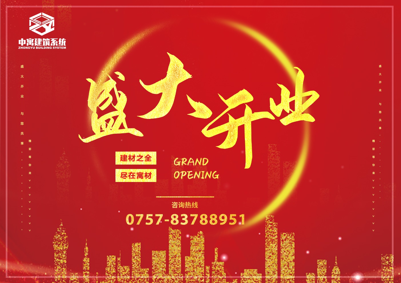 新启航,新绽放。中寓建材门店的开业,是我司在建筑行业战略征程上又一次的启航。这里将打造涵盖工程材料、设备、机械的一站式采购平台,致力于为目标客户,为中小型建筑施工企业与建筑制造企业有效降低综合成本,为客户提供专业化系统配套解决方案!
