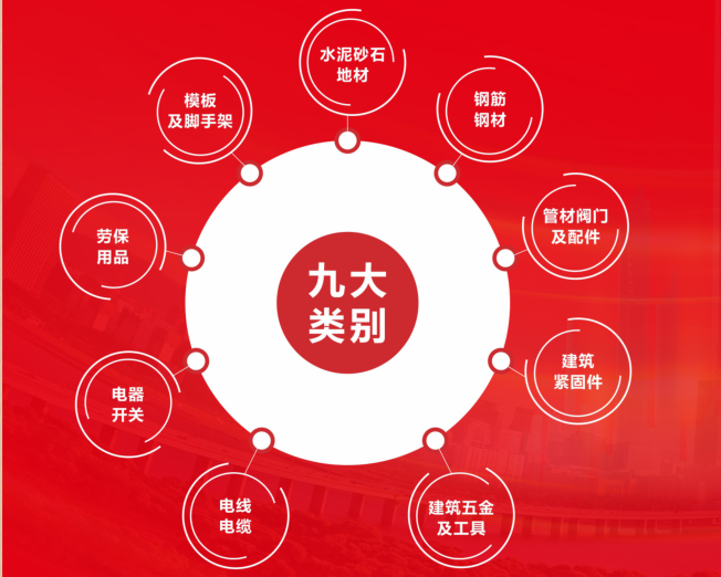 产品类别涵盖建筑、市政、公路、水利等土木工程,包含九大类别、80个二级类目、2000多个三级类目。